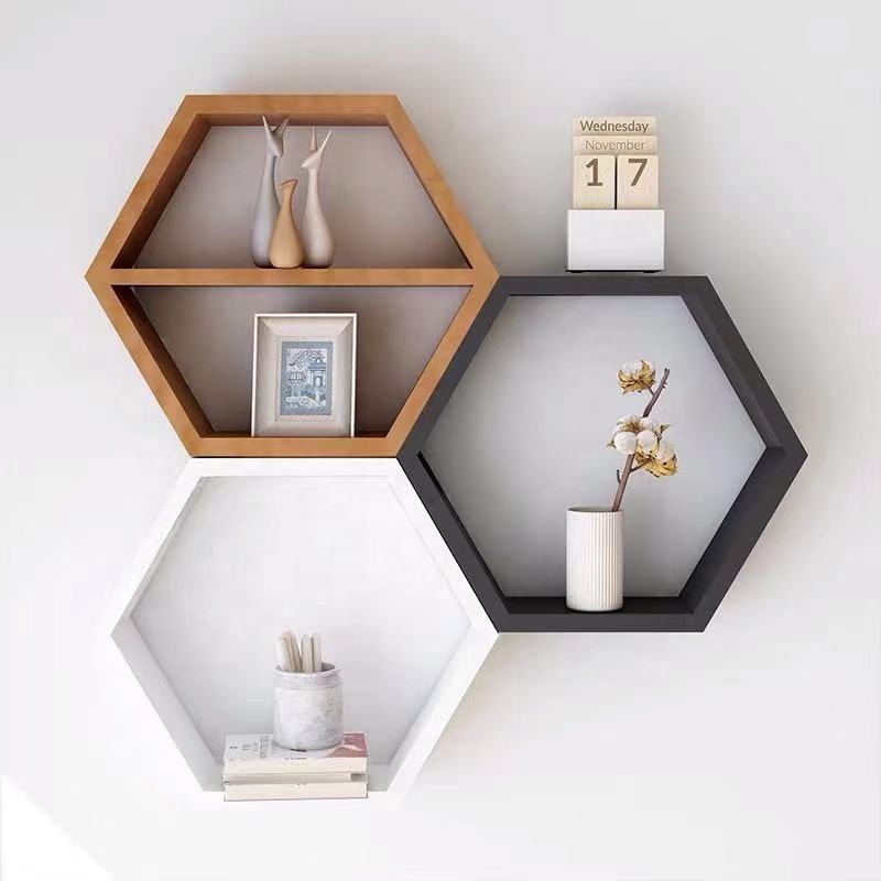 Set of 3 Wooden Honeycomb Shelves Hexagonal Floating Shelf Wooden Wall Shelves for Home and Office