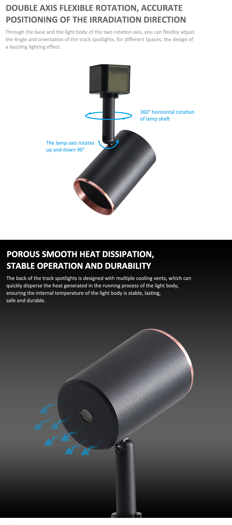 High Quality Modern Commercial LED Track Lighting High Lumens Ra80 COB Spotlight 20w Aluminum Housing 2 Wires Flicker Free