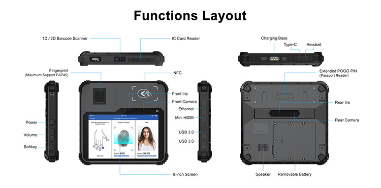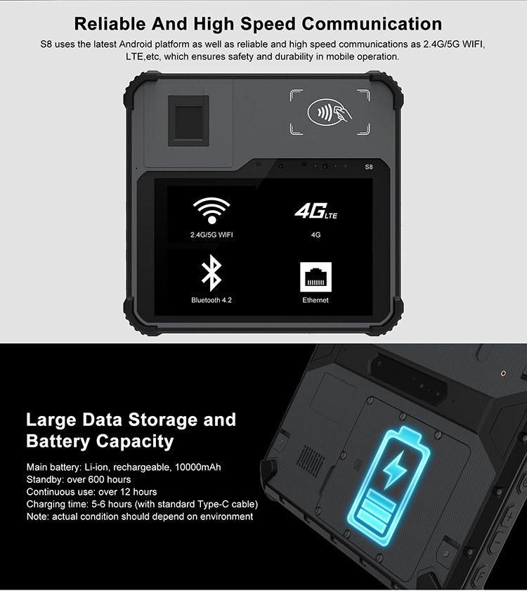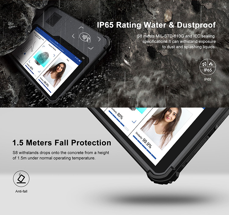 8 Inch Smart Rugged Mobile Biometric Fingerprint Scanner for Android Tablet with NFC Reader