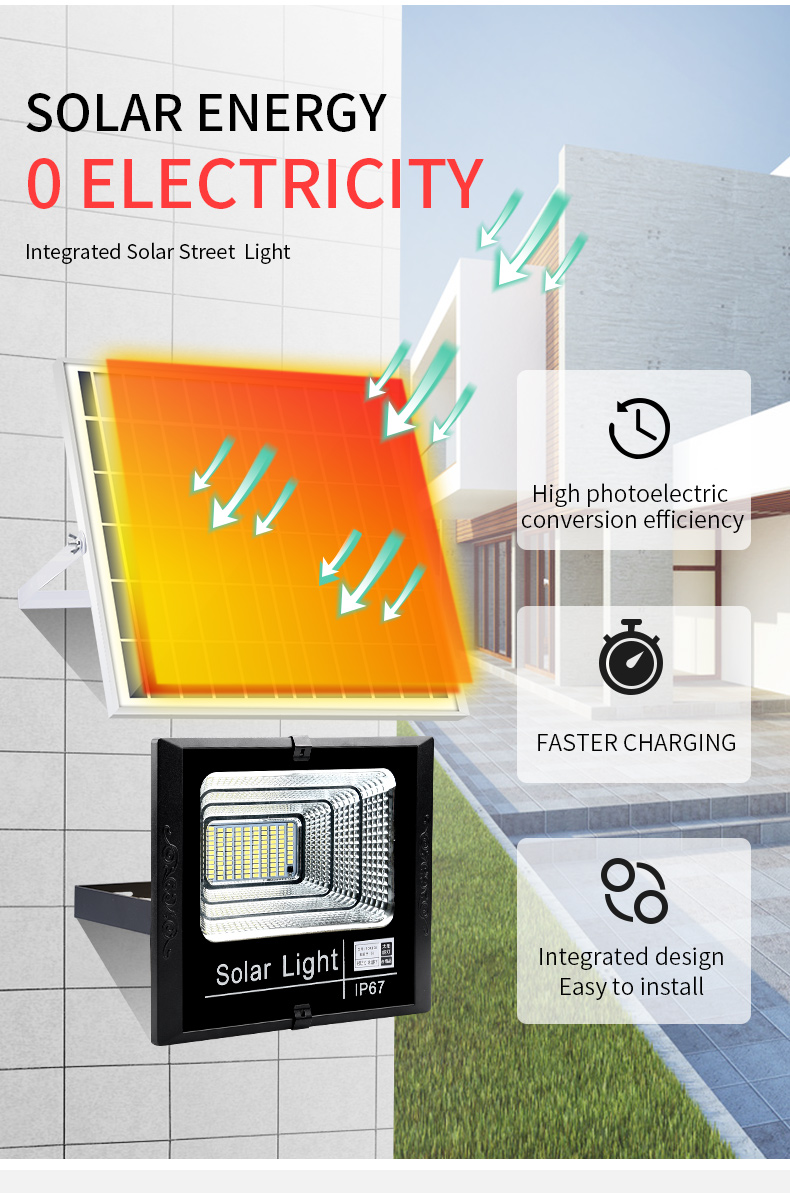 High Quality Solar Light ABS 40w 60w 100w 200w Outdoor Ip67 Led Solar Floodlight
