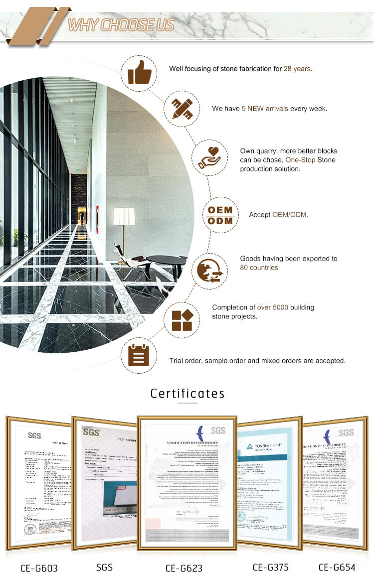 Product Description Material Granite, slate, etc. color white, black, yellow, rusty, red, pink, green, gray, gray, gray,Brown, blue, etc. Popular Sales G603, G654, G682, G687, G623, G664, G635, G681, Star Gray,Moca, river white, mountain white, Chinese black, hebei Black,Shanxi black etc. Surface...... -