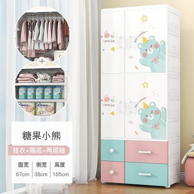 Simple Wardrobe Cartoon Simple Bedroom Assembled Storage Cabinet Plastic Double Door Hanging Wardrobe