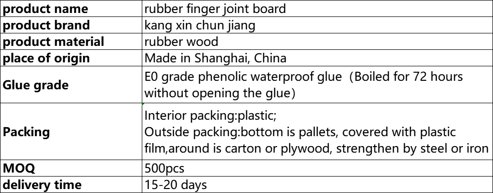 size: 1220x2440mm Origin: Guangdong, China Structural purpose: Yes product name: Rubberwood finger joint board After-sales service: online technical support Package preview: model: FJB-01 port: Shenzhen Packaging Details: plastic + cardboard Certification: ISO9001, FSC, UKAS grade: AAA level...... -