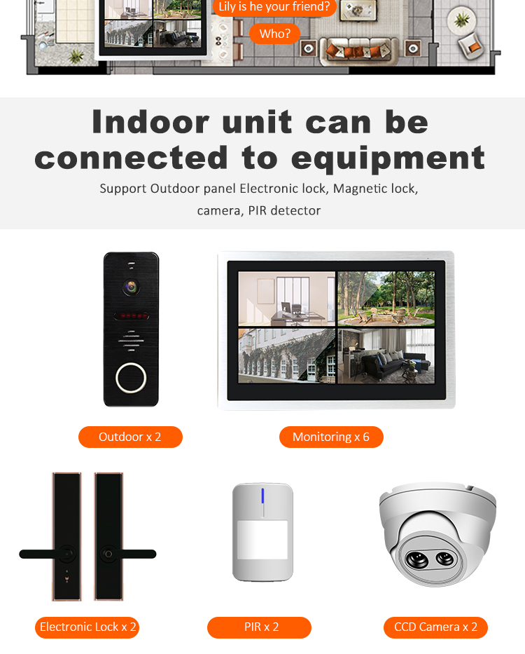 | payment terms: | L/C, Western Union, T/T | System capacity: | 6 indoor units + 2 outdoor units + 2 cameras |