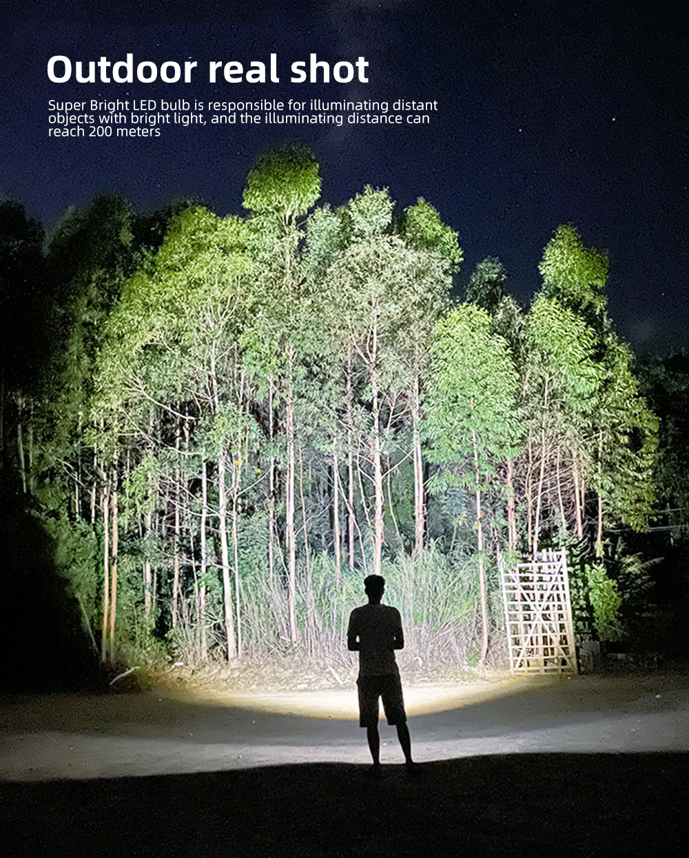 6. Zoom function. Spotlights for long-distance observation and floodlights for large-area illumination! Easily light up an entire room or focus on an object 200 meters away!
