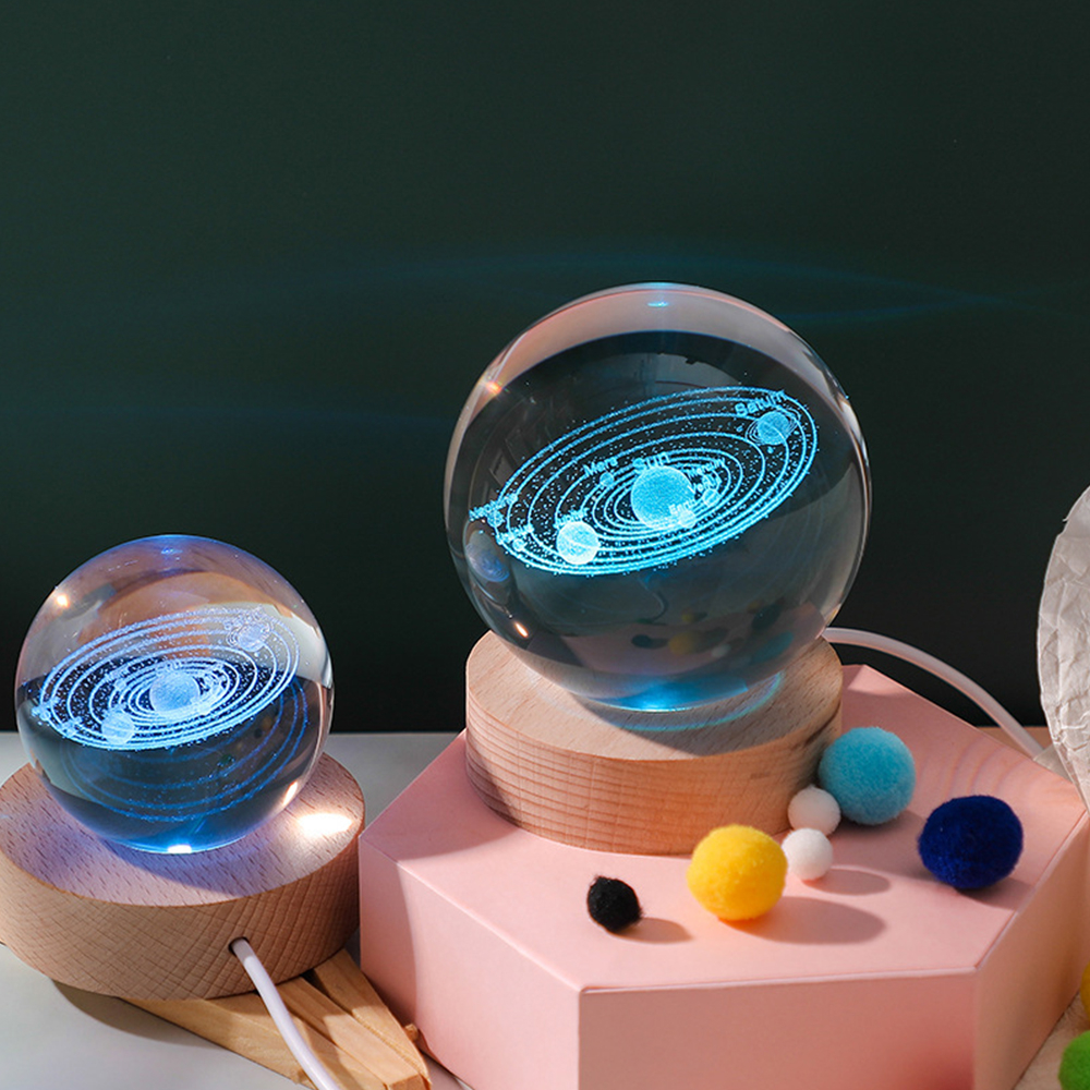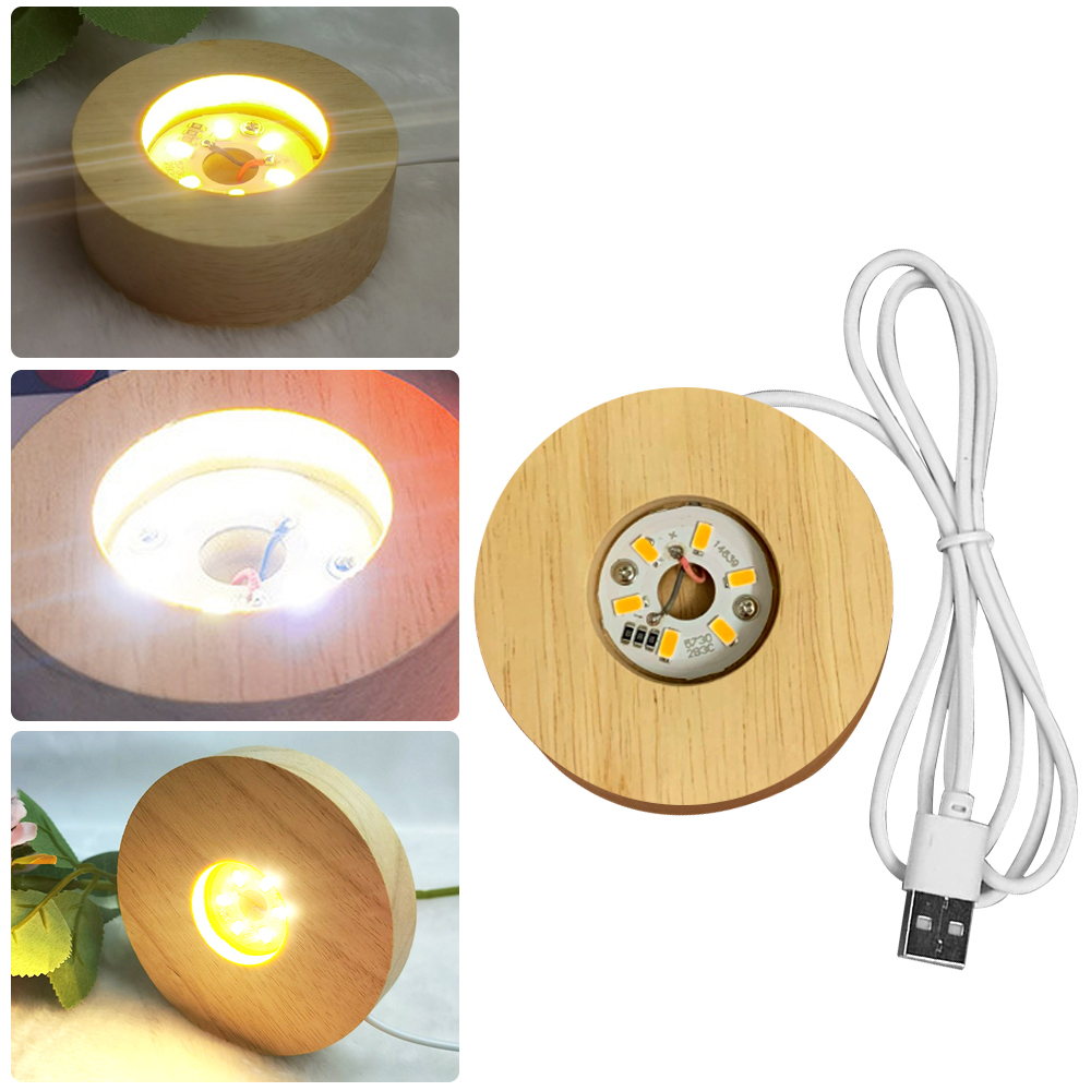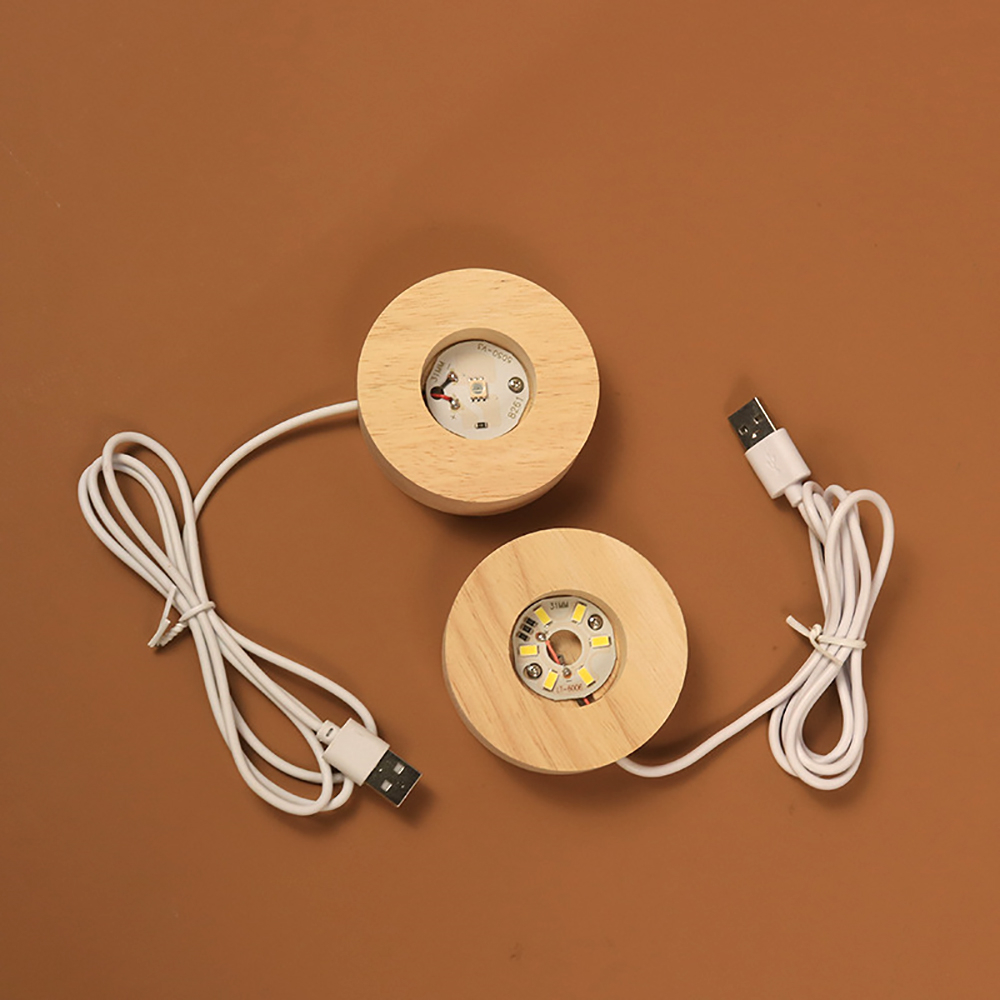 6CM 7CM Smart Home New Wooden Lamp Holder Rechargeable Wooden LED Light Rotating Display Stand Crystal Glass Resin Art