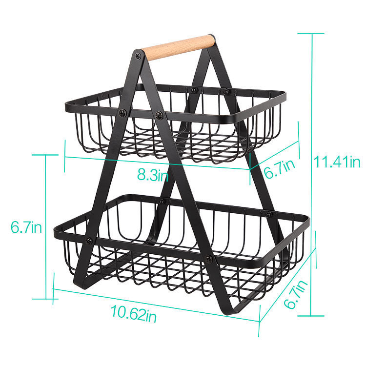 Metal fruit basket kitchen storage two-layer wire basket rack for storing vegetables, fruits, bread racks and household items