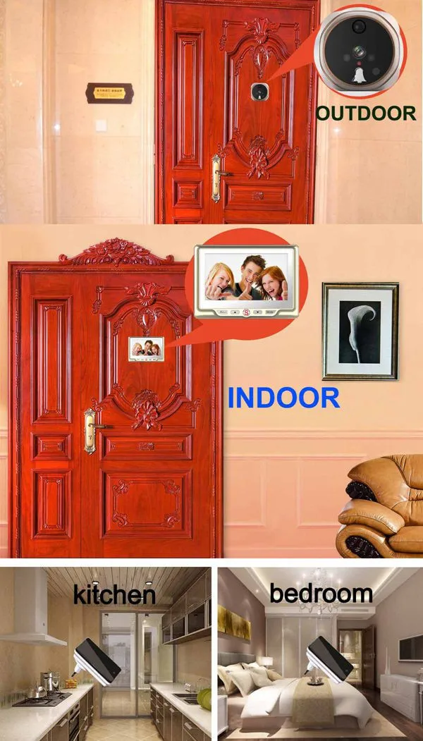 The 4.3-inch digital TS-506 is the only 2.4GHz wireless doorbell access control device. The product is suitable for unit households, such as villas, hotels, building units, homes, offices, etc. It is a very good security protection product for householders. Package 24 hours