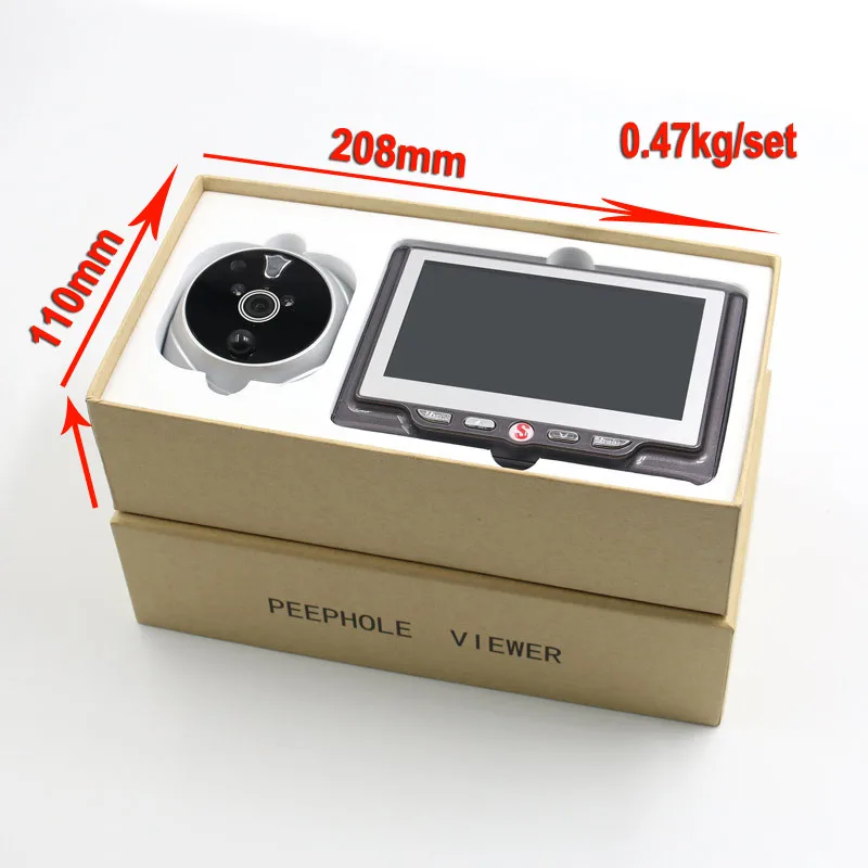 Origin: China Single pack size: 16.5X13.7X9.3 cm brand: RT LCD screen: 2.8 inches model: DV0101 Warranty: 1 year After-sales service: online technical support Gross weight per piece: 0.500 kg angle: 90 degrees Screen Resolution: 320*240 application: apartment, house, office, hotel design style:...... -