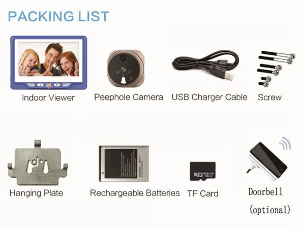consumption: ultra low consumption brand: video design style: modern After-sales service: online technical support angle: 145 degrees application: apartment, villa Warranty: 1 year, 1 year type: peep door viewer Packaging Details: carton Origin: Guangdong, China Project Solution Capabilities:...... -