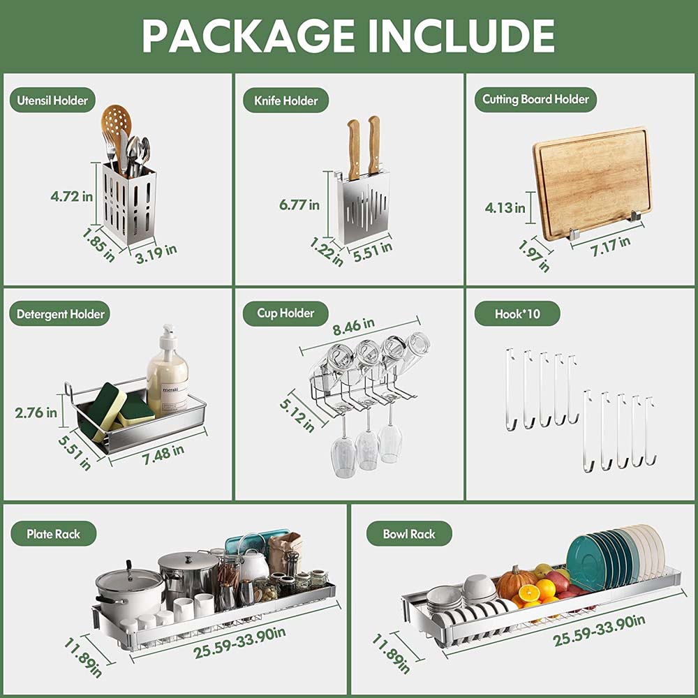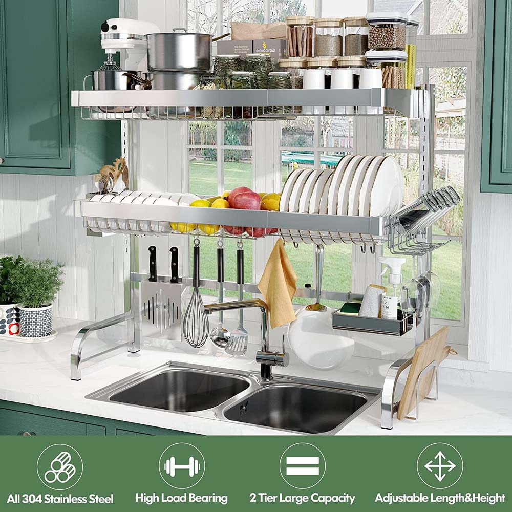Dish Rack Under Sink 2 Tier With Tray Bowl Wall Mount Kitchen Over Sink Dish Rack
