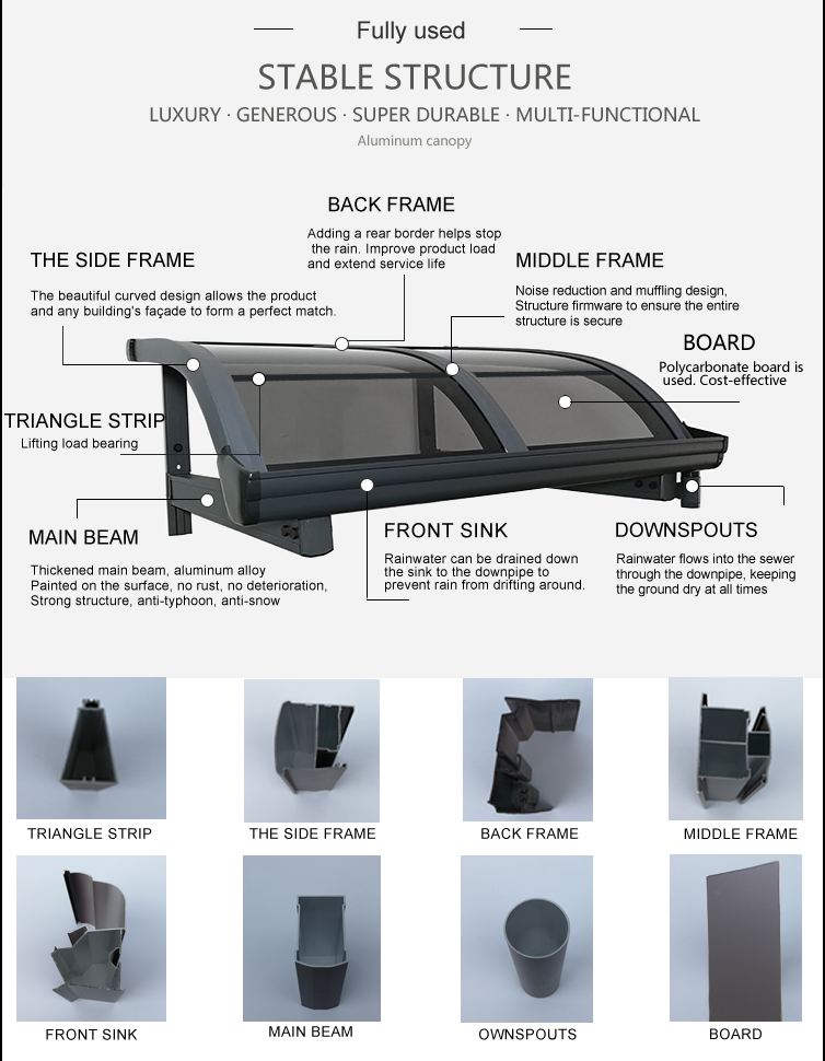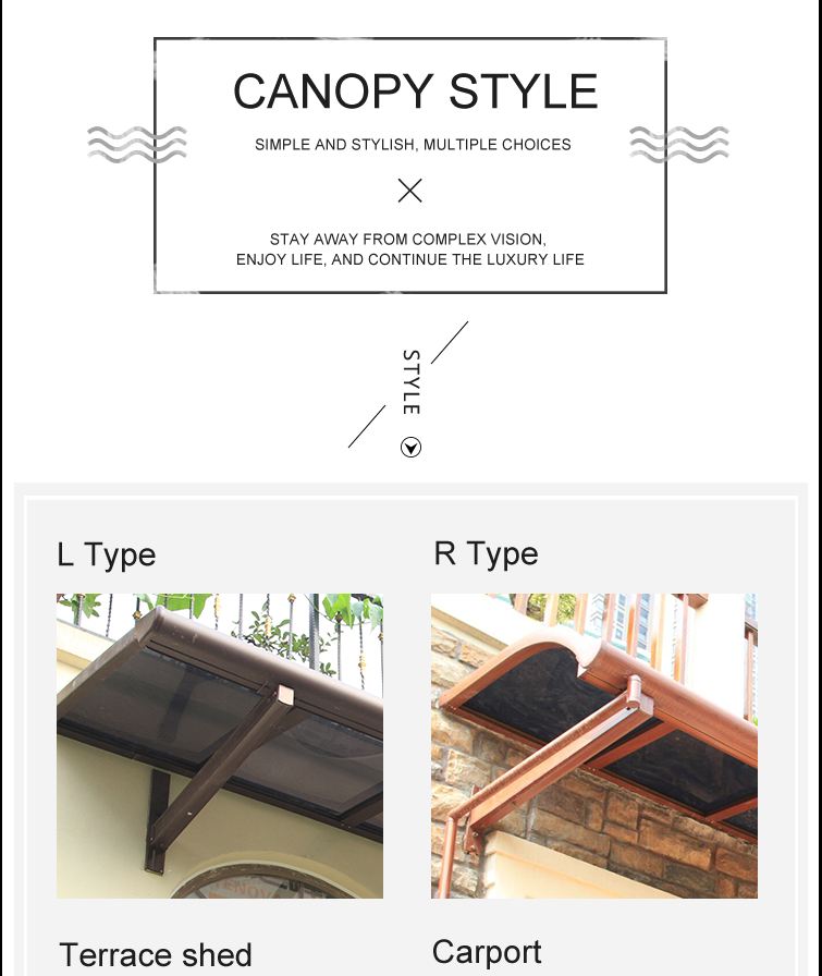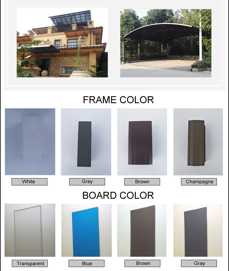 Waterproof outdoor aluminum frame polycarbonate canopy balcony awning garden cover