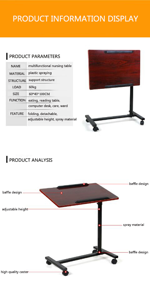 Laptop Desk Adjustable Hospital Equipment Bed Desk