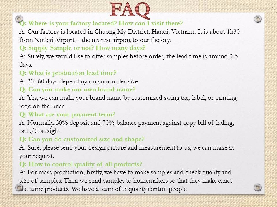 Our factory is located in a traditional village in Thai Binh Province, which is famous for its handicrafts. We have more than 1000 home workers who have years of experience in making handmade home decor products.