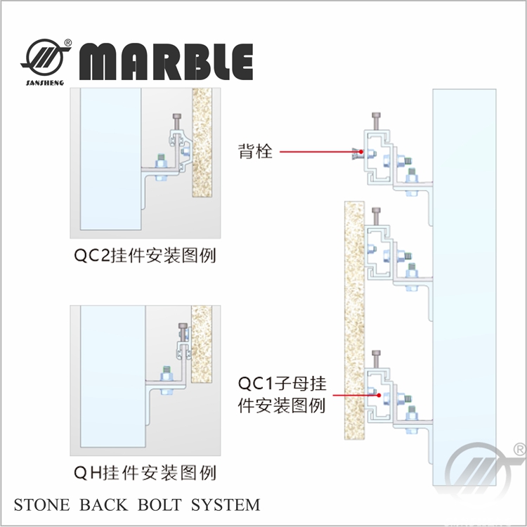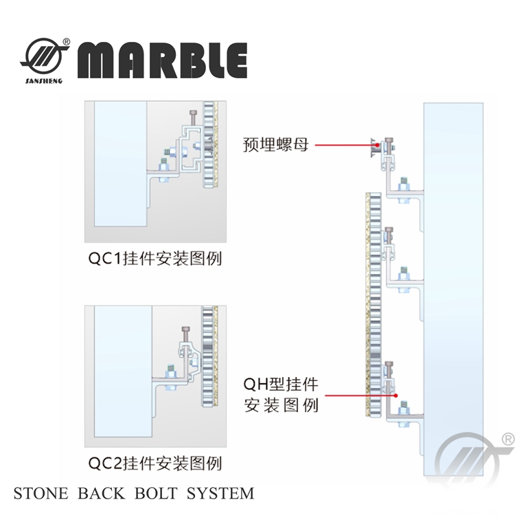 Grooved Marble Granite Fixed Ear Type Mother-in-Mother Pendant Back Bolt