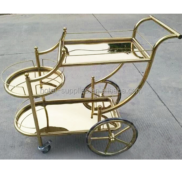 Luxury stainless steel metal gold plated salon barber cart with directional wheels for barber shop