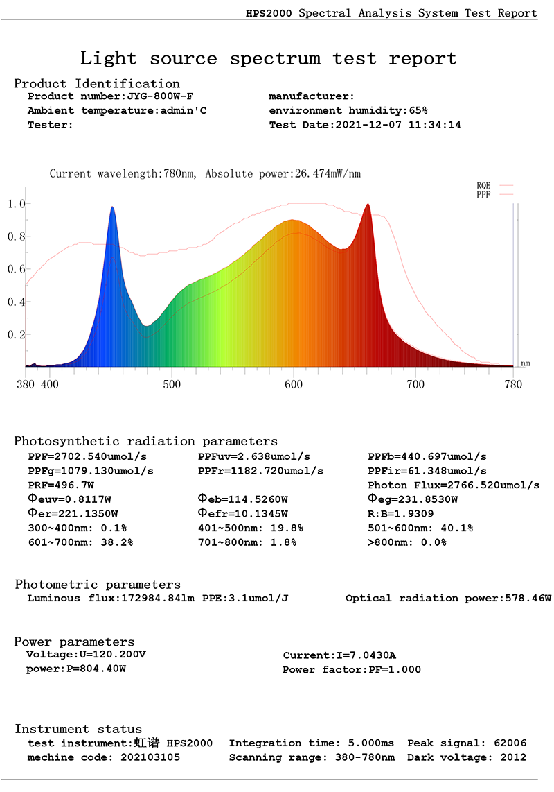 | model: | JYG-800W-F-F2 | custom made: | Different spectra can be provided according to different plants |