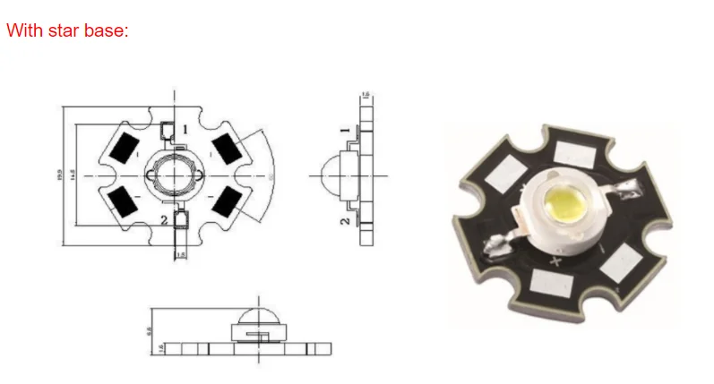 High power LED diode 1w 3w 5w with 20mm radiator pcb star shape