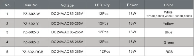 * LED type: 12pcs 1W LED+6W SMD 5050 LED