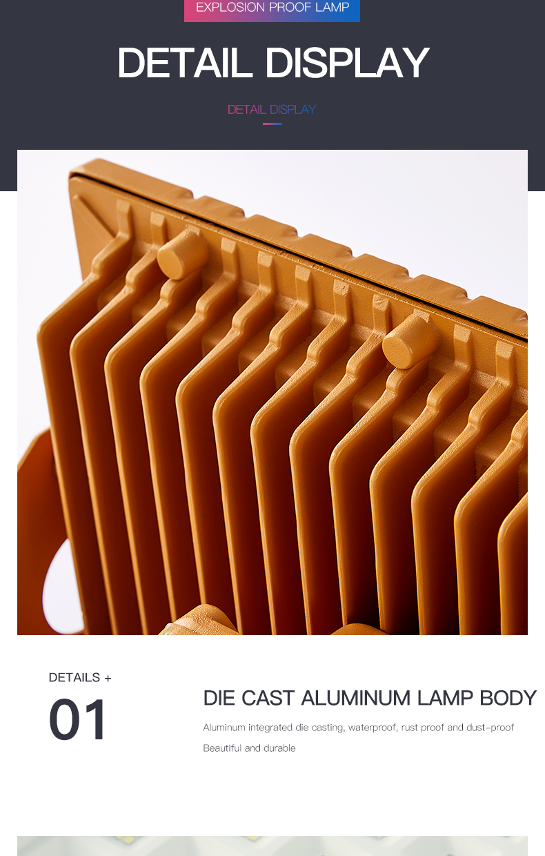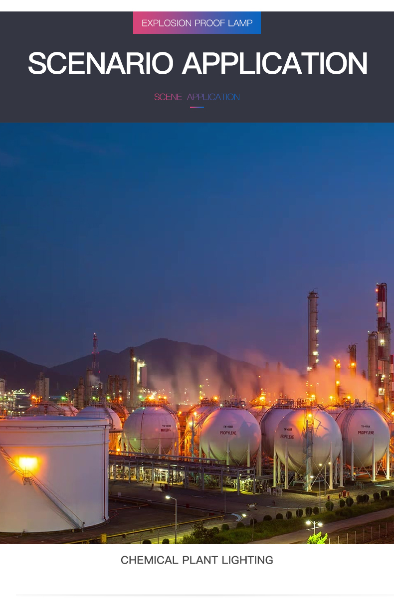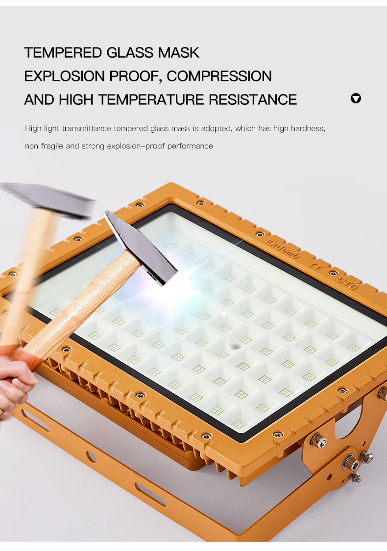 Protection class: IP65 Material: Die-cast aluminum + tempered glass cover Explosion-proof grade: Exd II BT4 place of origin; place of origin: Guangdong, China color: red/yellow/blue/green Lighting Solutions Services: Lighting and Circuit Design Work pressure: 12v/24v/220v optional Applicable cable..... -