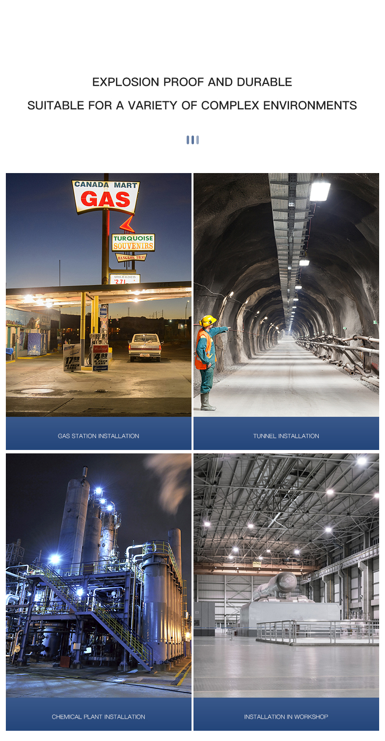 Key words: Explosion-proof gas station lights Lamp luminous flux (lm): 110 color: custom made light source: lead Working hours (hours): 50000 Lamp luminous efficiency (lm/w): 80 Lifespan (hours): 50000 Install: Bracket installation feature: Explosion proof brand: IECOL Lighting Solutions Services:..... -