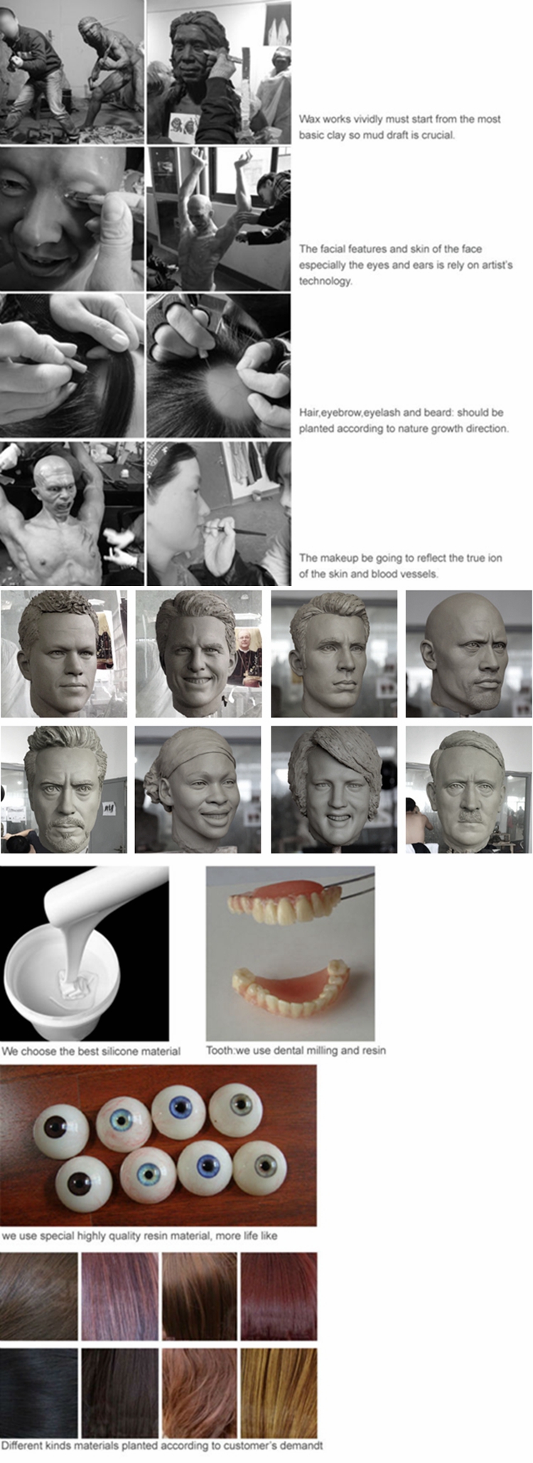 2. We use silica gel as raw material to upgrade traditional wax figures.