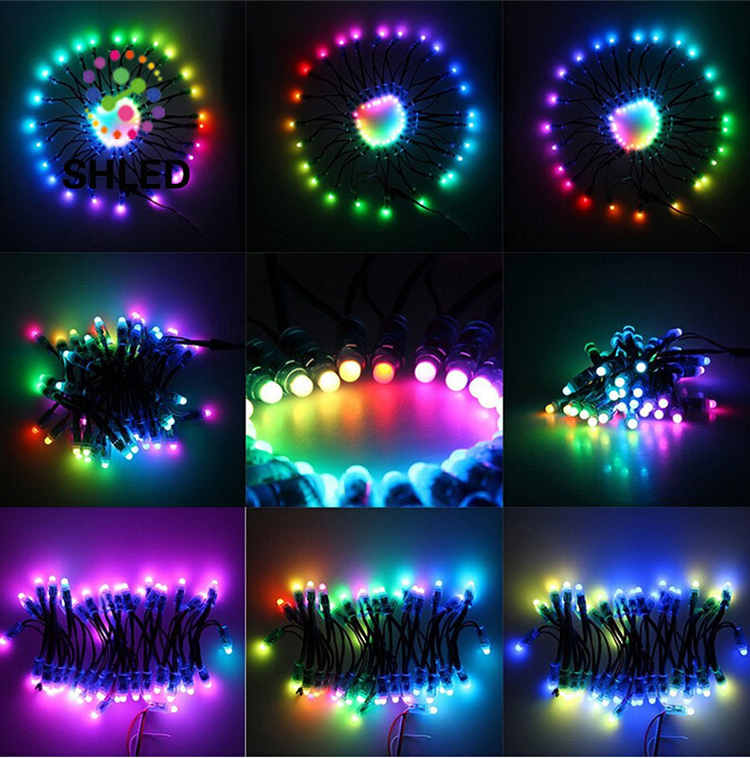 WS2811 12mm Diffuse Digital Fantasy Color RGB LED Pixel String Light Individually Addressable LED Pixel Module 50pcs/string |