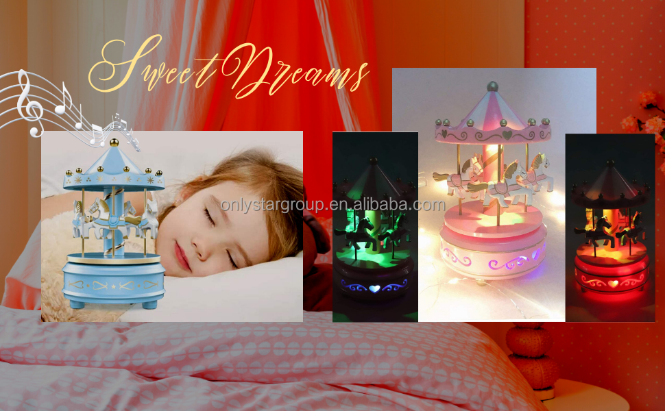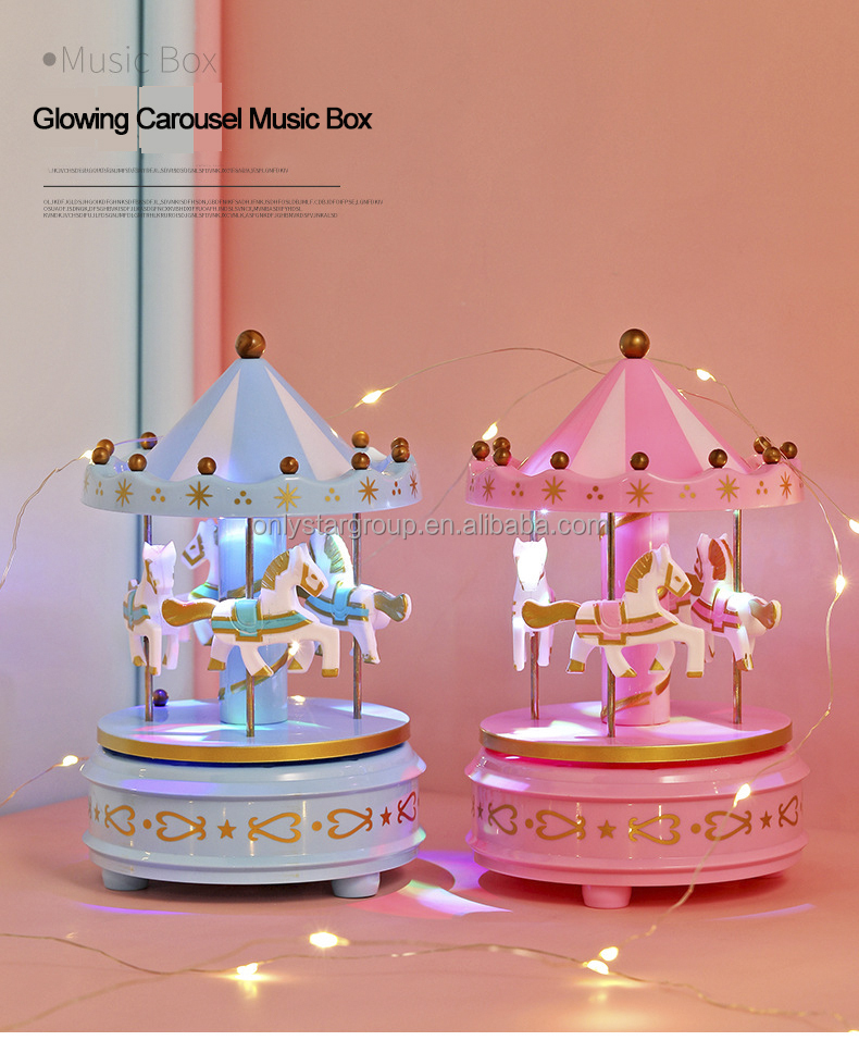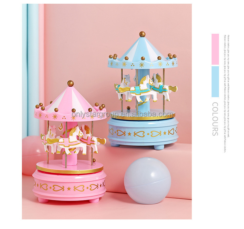 Factory Design Carousel Clockwork Carousel Wood Crafts Ornaments Carousel Christmas Ornaments Mobile Wooden Music Box
