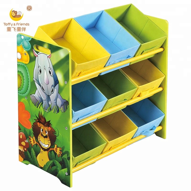 Toffy & Friends Wooden Kids Fabric Storage Box Toy Storage Box Toy Rack Toy Storage