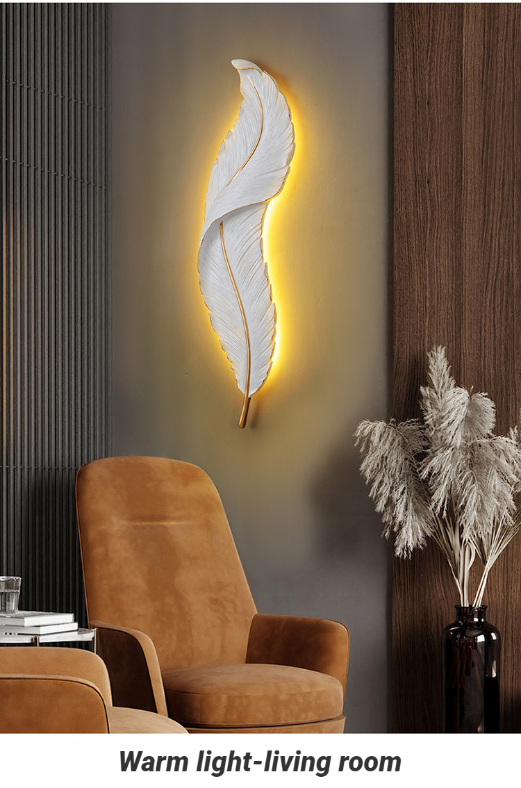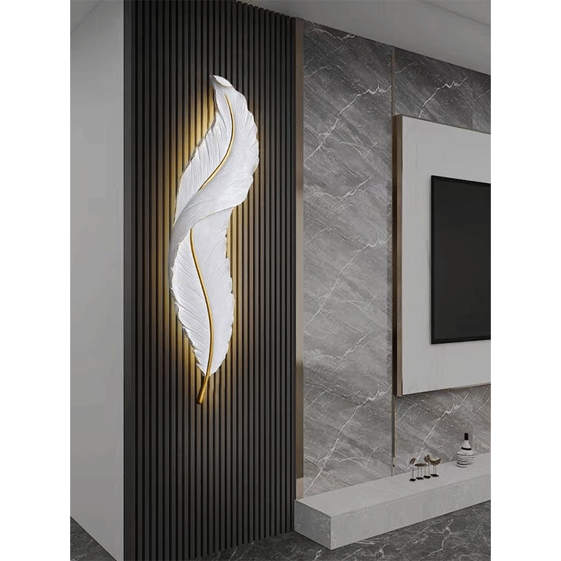 High quality home hotel villa engineering decoration resin creative modern feather design indoor led wall lamp