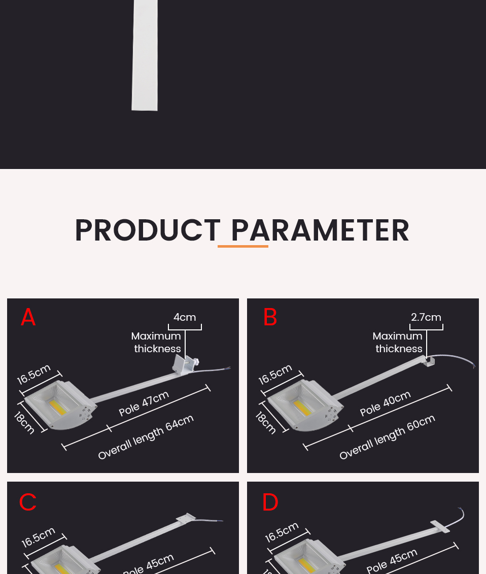[4 Mounting Pole Options]There are 4 kinds of installation poles for this exhibition light to choose from
