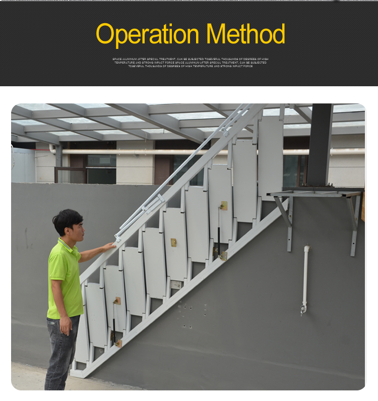 Custom-made aluminum alloy folding folding stairs against the wall are mainly used for attics, attics, and shops with limited space, and are also the main passage connecting upstairs and downstairs.