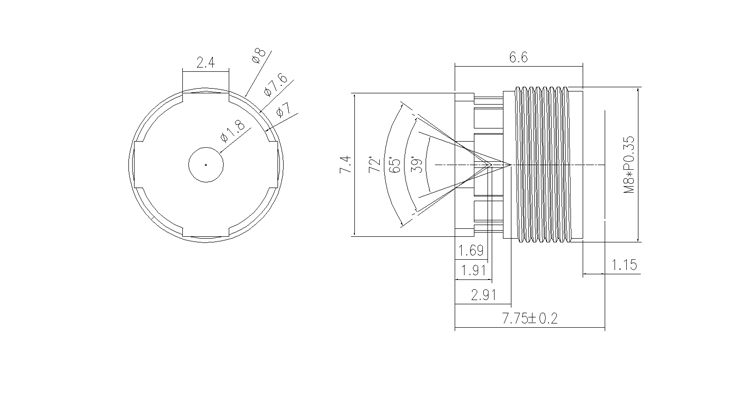 | focal length: | 4.5mm | Overall length: | 7.75 |