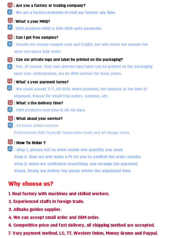 | ID: | Accept custom logo | payment terms: | L/C, Western Union, D/P, D/A, T/T, MoneyGram, Paypal |