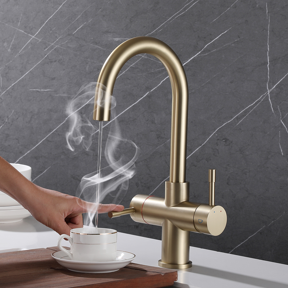 4 in 1 Brushed Gold Stainless Steel Boiling Kitchen Faucet Instant Hot Water Faucet Filter Boiler Faucet with Boiling System