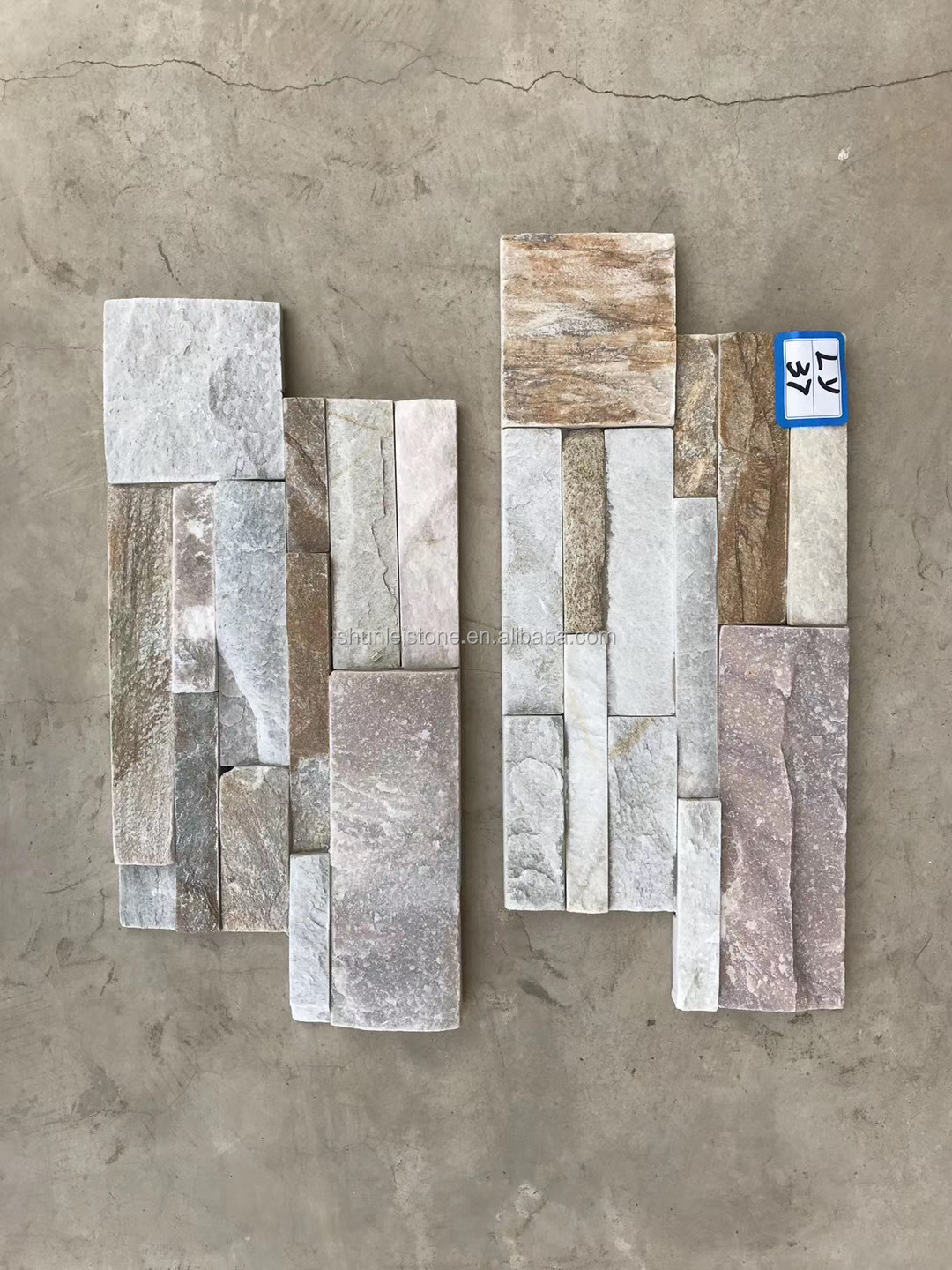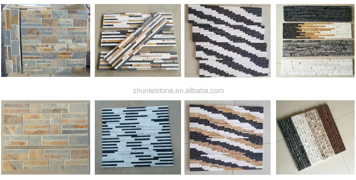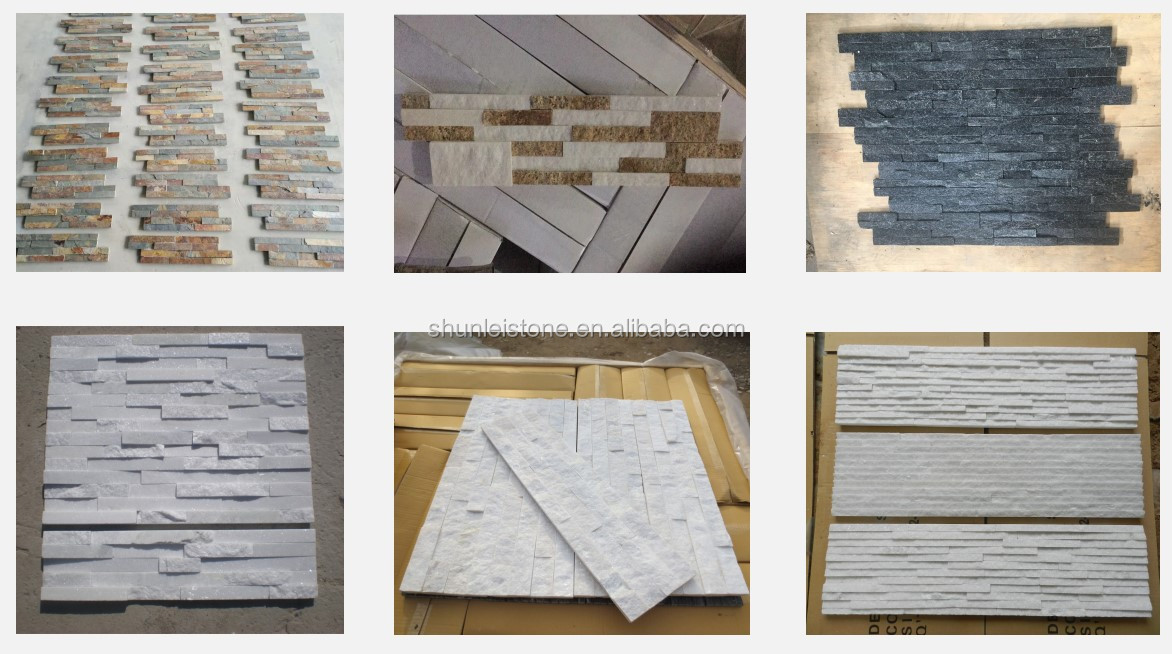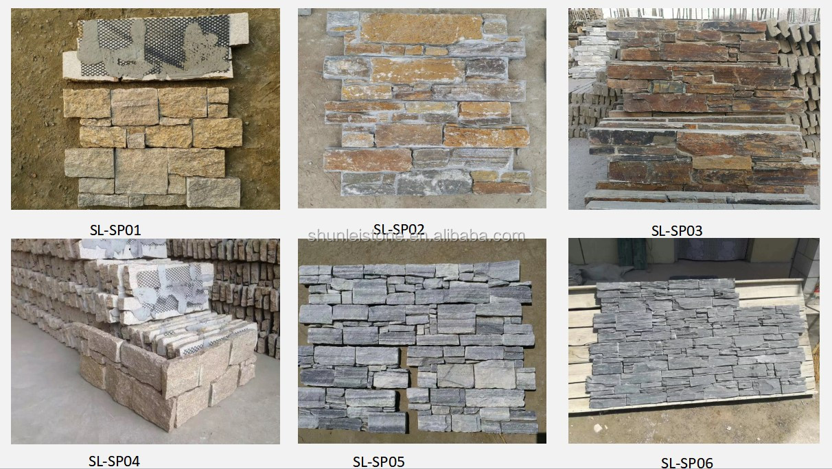product name: Natural gray stone wall tile ledge stone panel Surface treatment: Split application: Exterior and interior wall cladding Stone name: natural slate style: modern model: RS-LS009 port: Xiamen brand: Sun rise Stone Color: white, black, gold Resistance to slate erosion: Ant acid MOQ: 100..... -