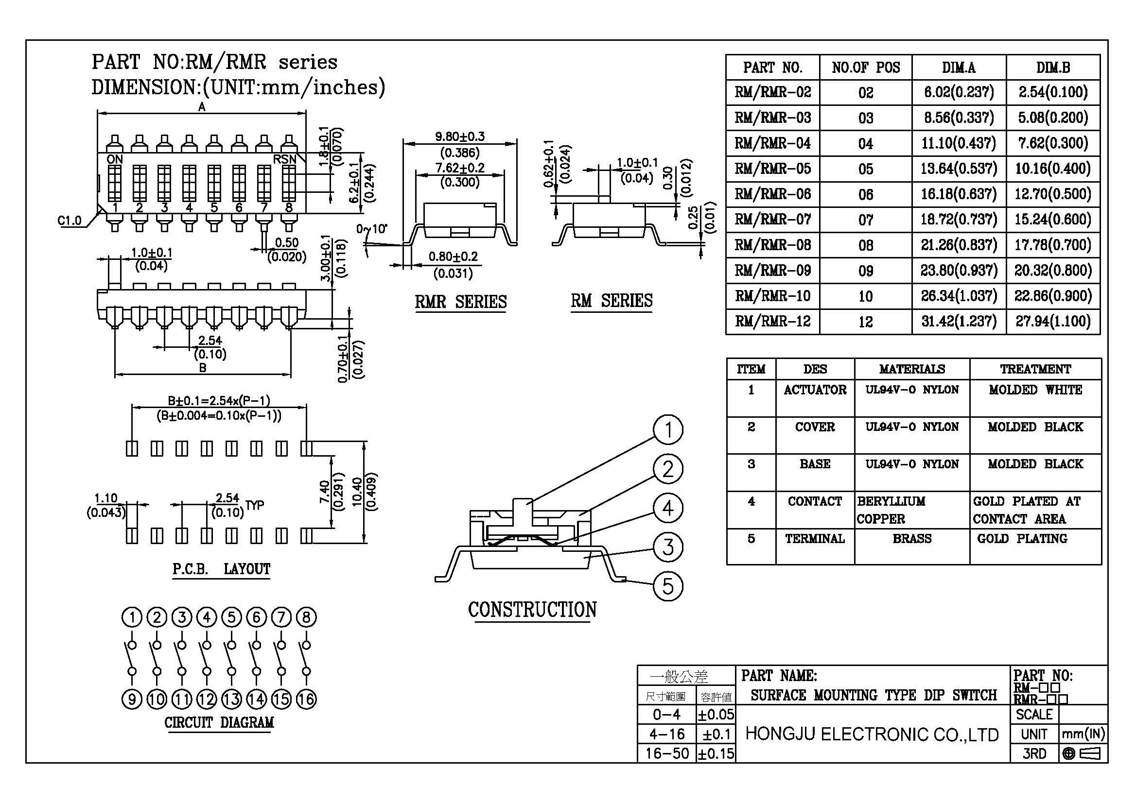 | product name: | HONGJU SMD 6 bit DIP switch with 2~12 bit switch | circuit: | SPST |