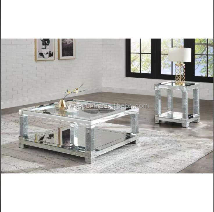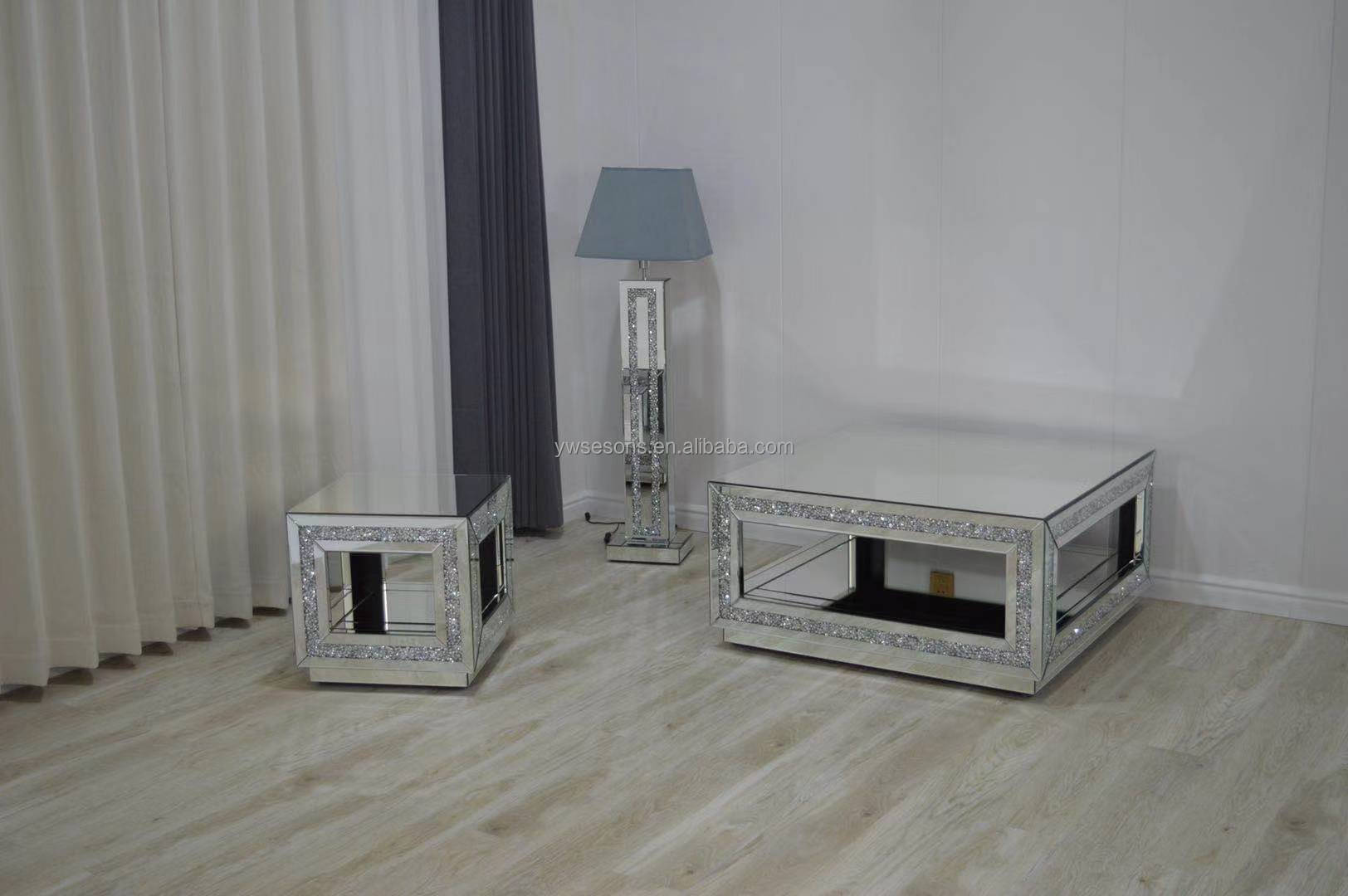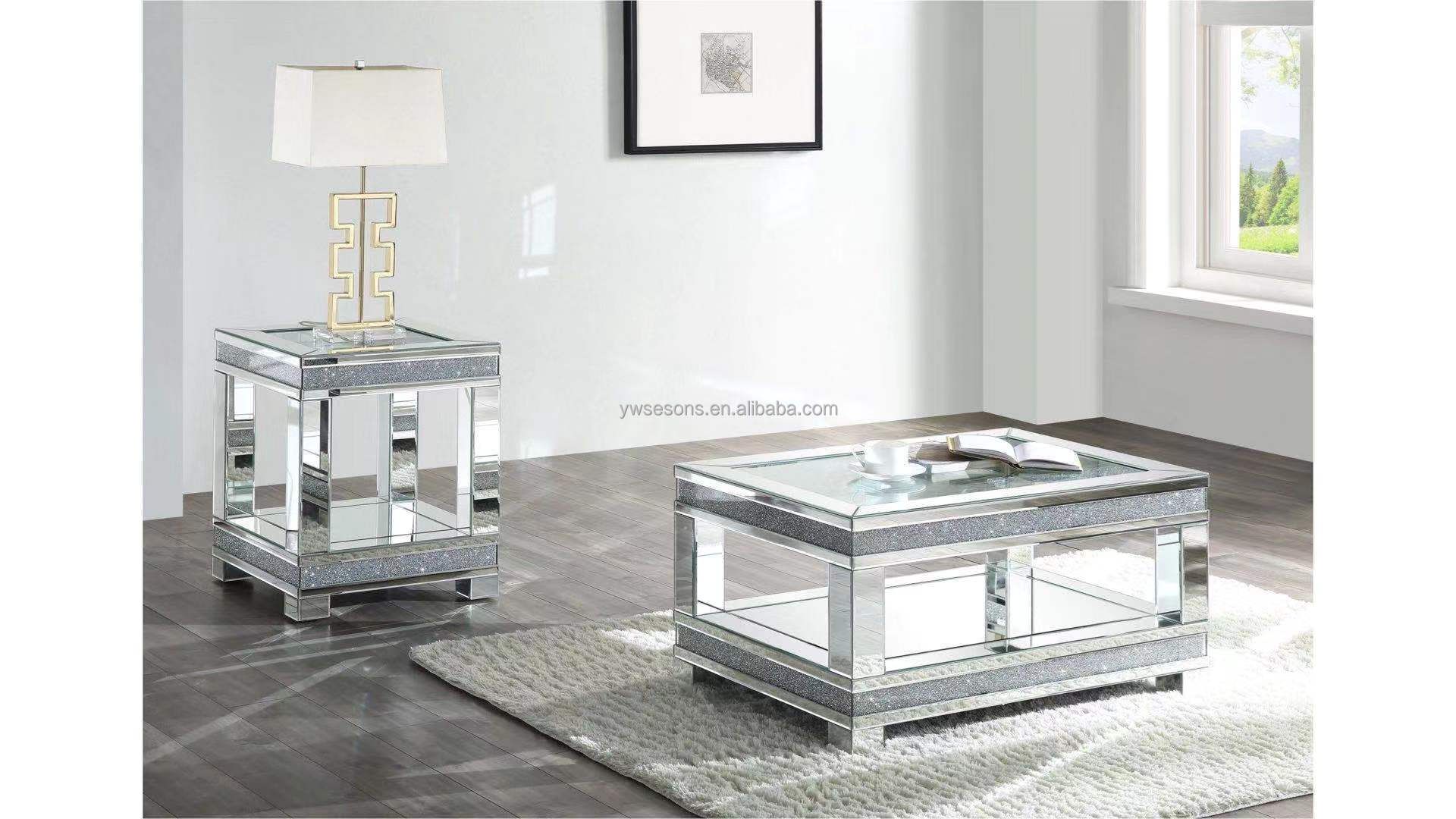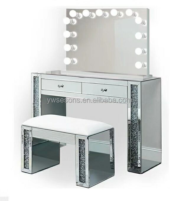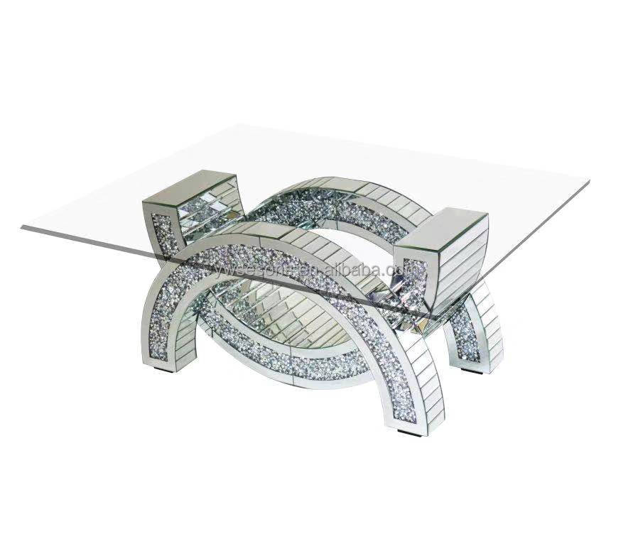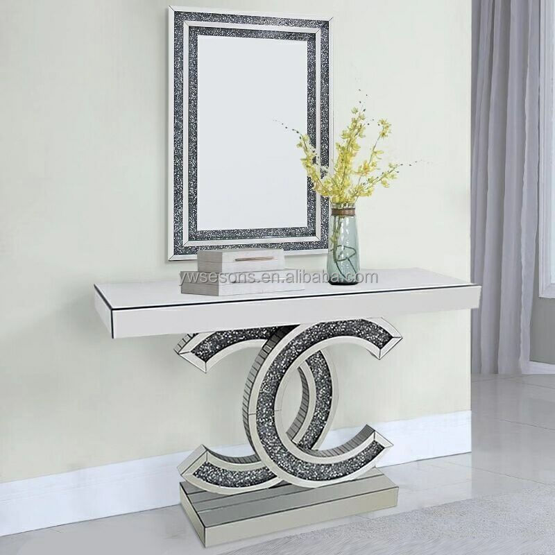 Hot Sale Premium Shiny Luxurious Broken Diamond Mirror Console Table With Mirror
