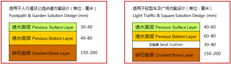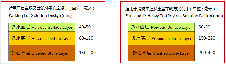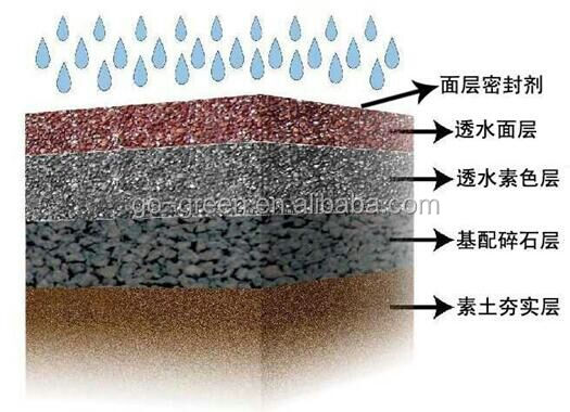 Permeable concrete structure:It is mainly divided into four layers: rammed earth layer + gravel layer + permeable bottom layer + permeable surface layer