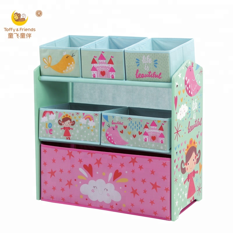 Toffy & Friends Wooden Kids Fabric Storage Box Toy Storage Box Toy Rack Toy Storage