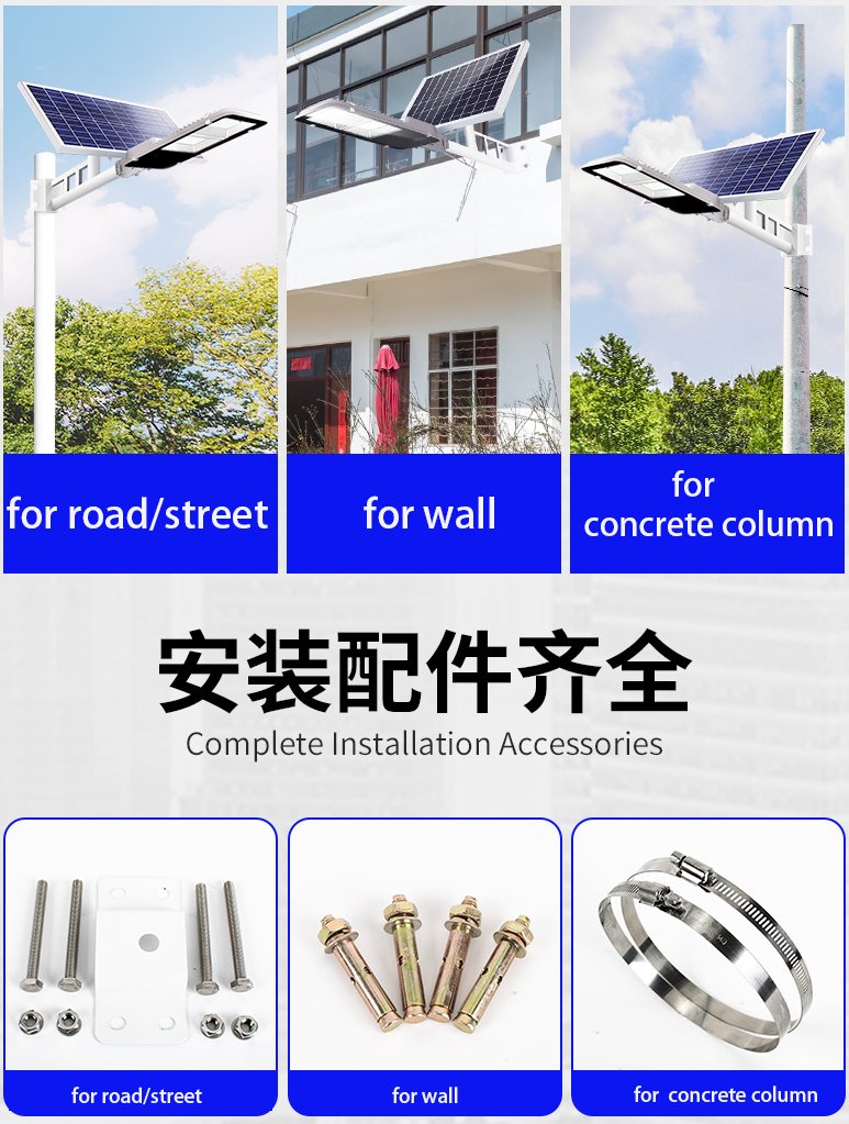 power supply: Battery application: road Supply capacity: Annual output: 100,000 pieces Lifespan (hours): 50000 Color rendering index (Ra): 80 Material: New ABS Lamp Luminous Efficiency (lm/w): 150 Continuous rainy days: 2-3 days Operating mode: Motion sensor + full brightness Support dimmer: Yes...... -