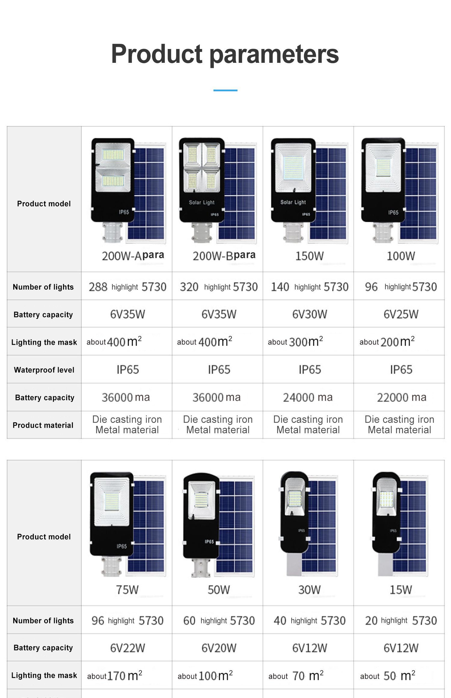 HIGH CLASS High quality aluminum ip66 outdoor garden 50w 100w 200w 300w 500w LED solar street light