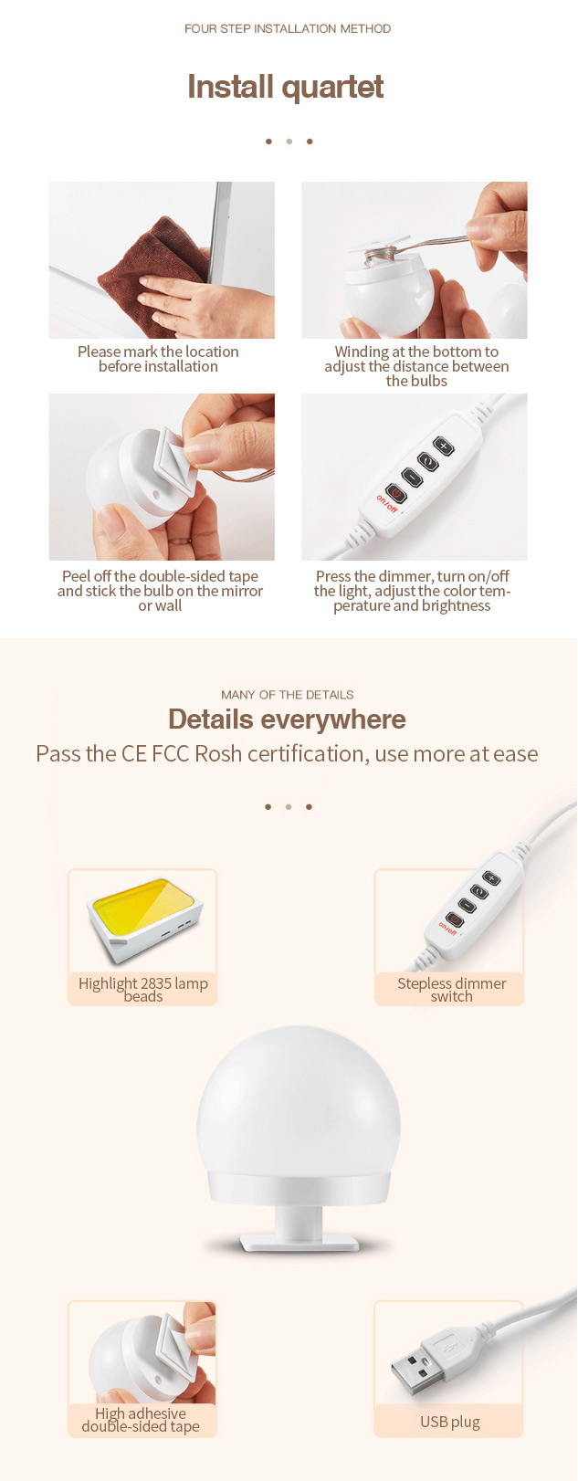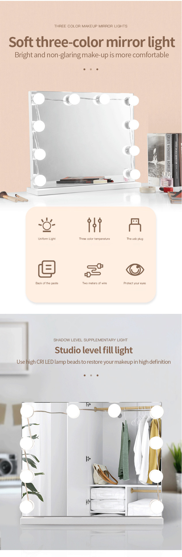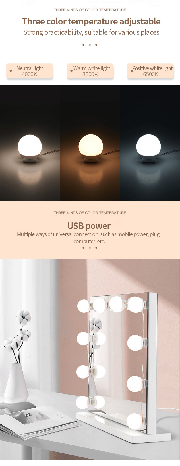 Hollywood Style Dimmable Vanity Mirror Bulb USB Powered 3 Colors Bathroom Bedroom LED Vanity Mirror Light