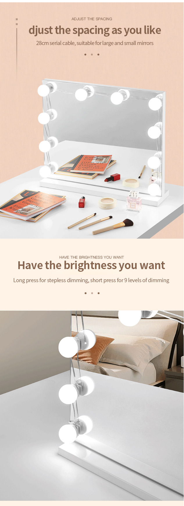 Makeup Mirror Dressing Table LED Bulb Set USB Rechargeable Adjustable Brightness Cosmetic Desktop Mirror LED Bulb String