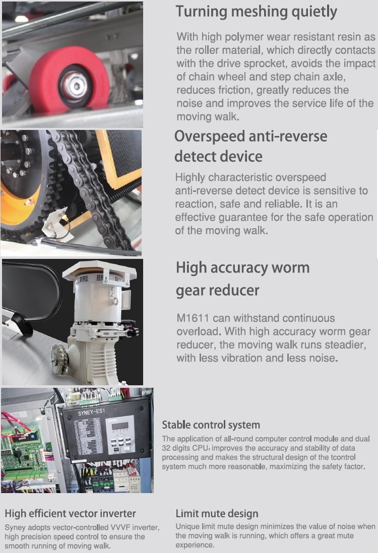 Syney moving walks are convenient, fast, stable, comfortable, safe and beautiful. Whether going up or down the moving walkway, it is as easy as walking on the ground. Syney moving walk has the characteristics of low noise, long service life and convenient maintenance.
