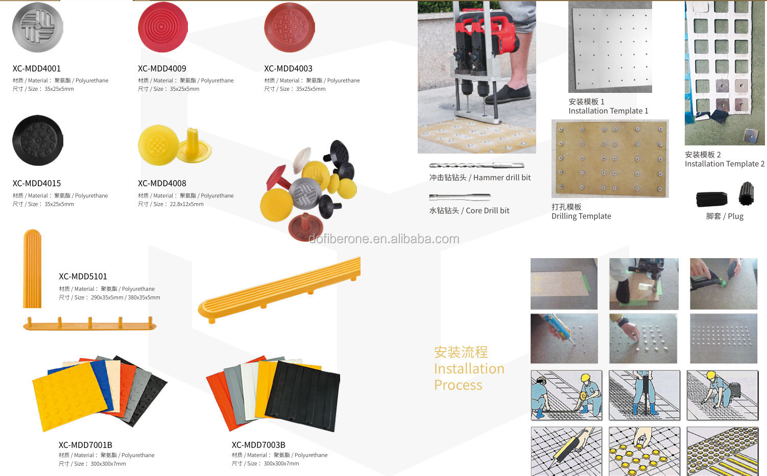 Origin: Guangdong, China Packaging Details: Carton, according to your request Supply capacity: 1500 pieces per week payment terms: Western Union, T/T port: Shunde/Guangzhou/Shenzhen type: Tactile Paving brand: Hinge Function: Guidance for the visually impaired After-sales service: other Warranty: 3.... -