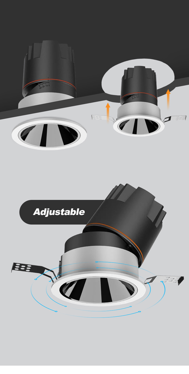 2700K 3000K 3500K 4000K 5000k 3 4 6 8 inch led recessed dimmable office adjustable downlight basin light panel ceiling light