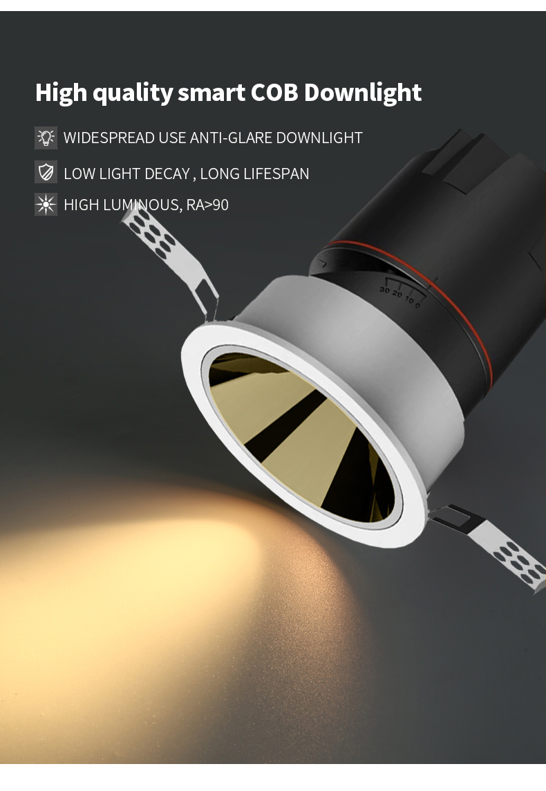 Commercial High Lumen Downlight 3W 5W 7W Downlight Cob Recessed Ceiling Downlight Mini Tri-Color Dimmable LED Downlight