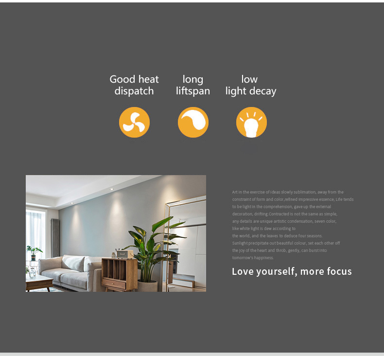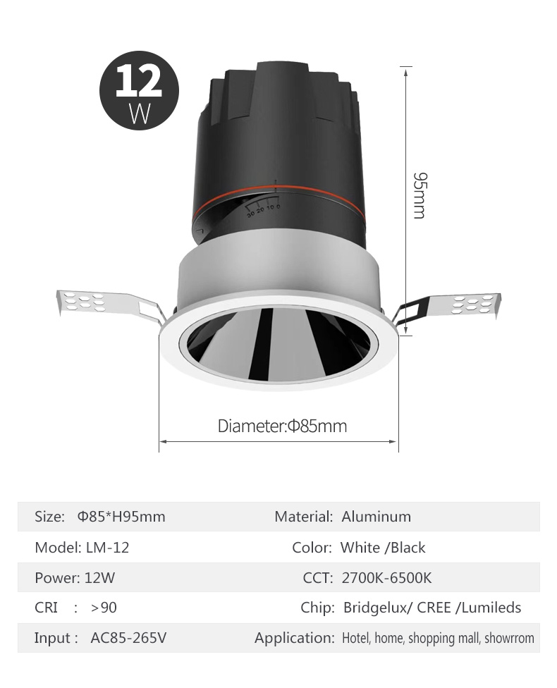 Protection level: IP20 Product weight (kg): 0.2 application: Interior Ministry Hotel Operating temperature: -45℃-50℃ Color rendering index (Ra>): 90 Support dimmer: No Install: recessed Lamp body material: aluminum, aluminum Lamp luminous flux (lm): 1200 Warranty period (years): 2 years Lighting...... -