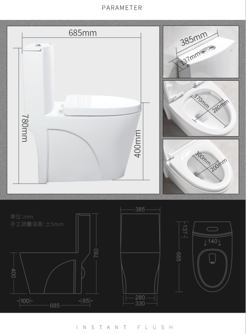 Toilet shape: elongated Buffer cover: Yes design style: modern remote control: does not contain structure: piece mix. Pit spacing: 305mm Washing method: Siphon flushing Packaging Details: 1. One-piece toilet: packed into a carton with a wooden base. Two-Piece Toilet: Packed separately, one toilet...... -